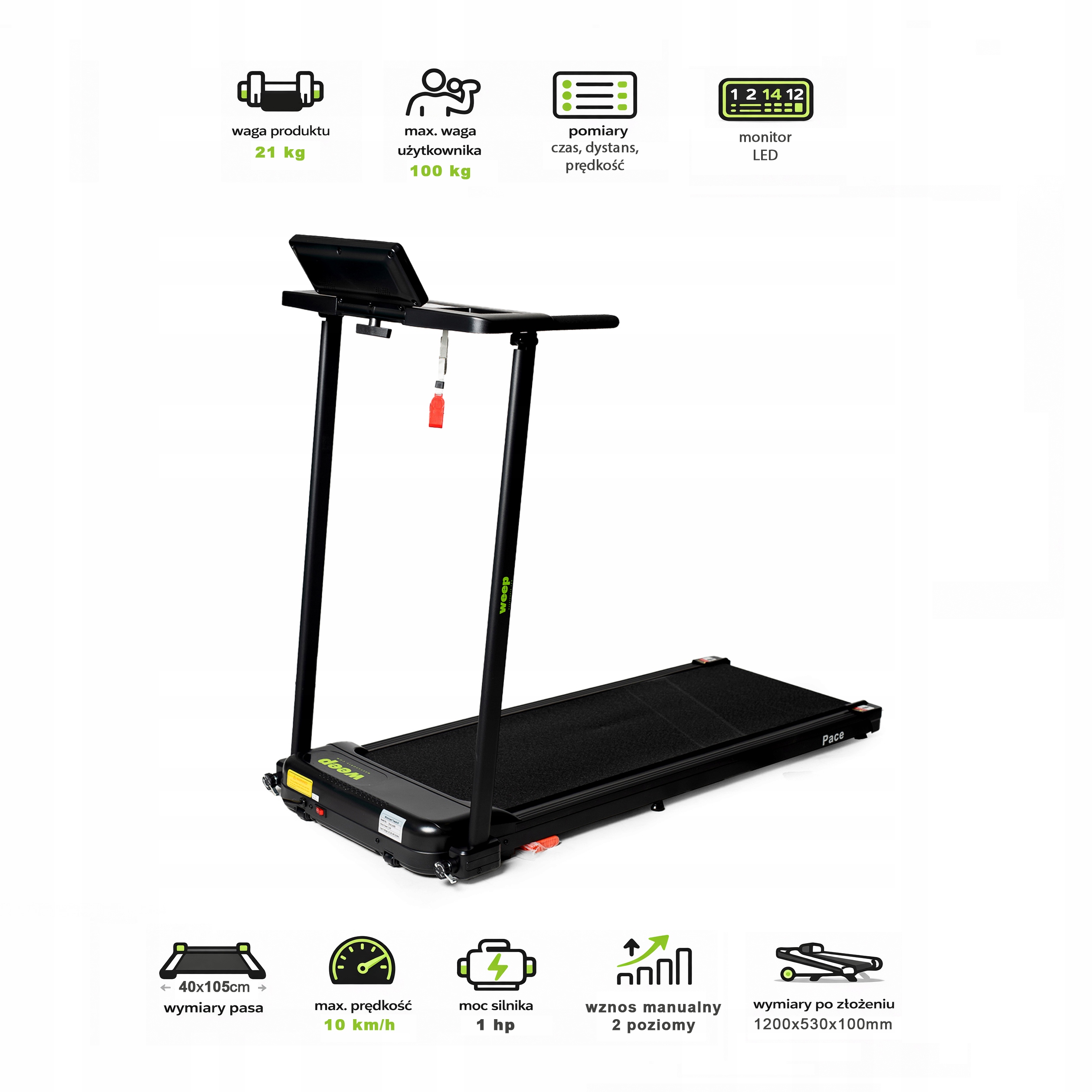 ✅ Główne cechy bieżni domowej Weep Pace