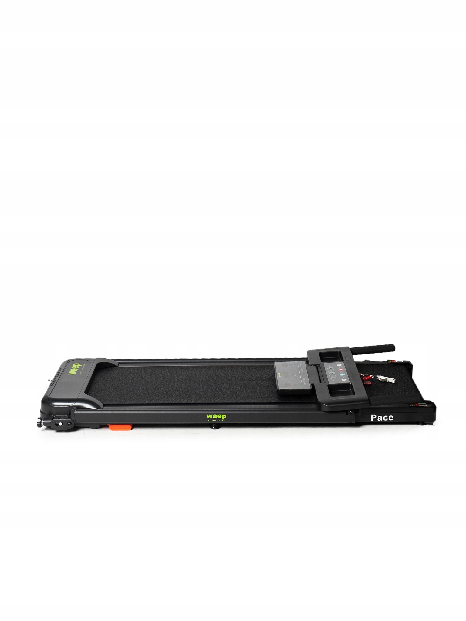 Dzięki składanej, niskoprofilowej konstrukcji bieżnię WEEP Pace można bez problemu przechowywać pod łóżkiem, sofą lub przy ścianie. Niewielka waga oraz kółka transportowe umożliwiają szybkie i wygodne przestawienie urządzenia w dowolne miejsce.