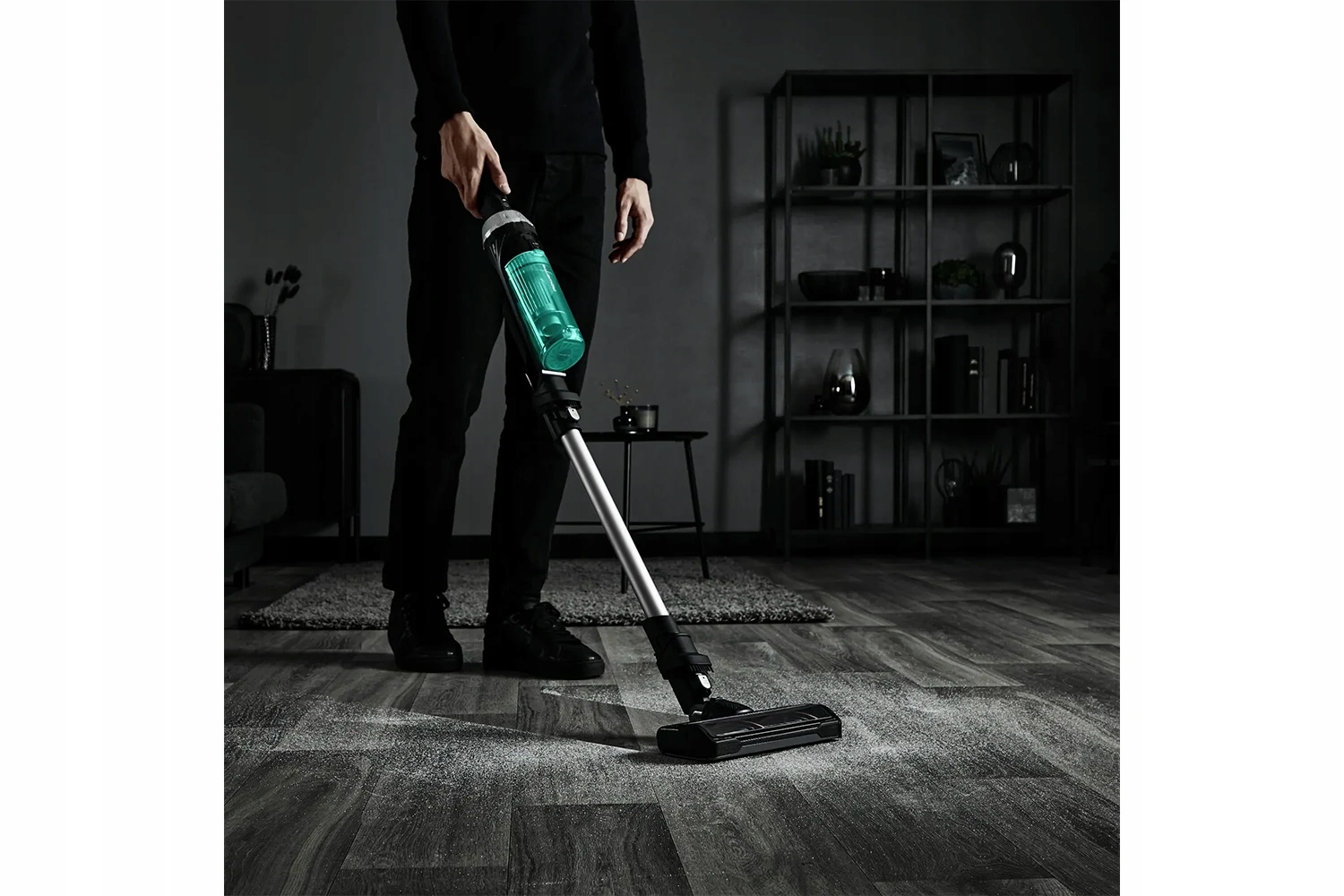 Wydajny akumulator pozwala na swobodne odkurzanie całego mieszkania bez konieczności doładowywania.